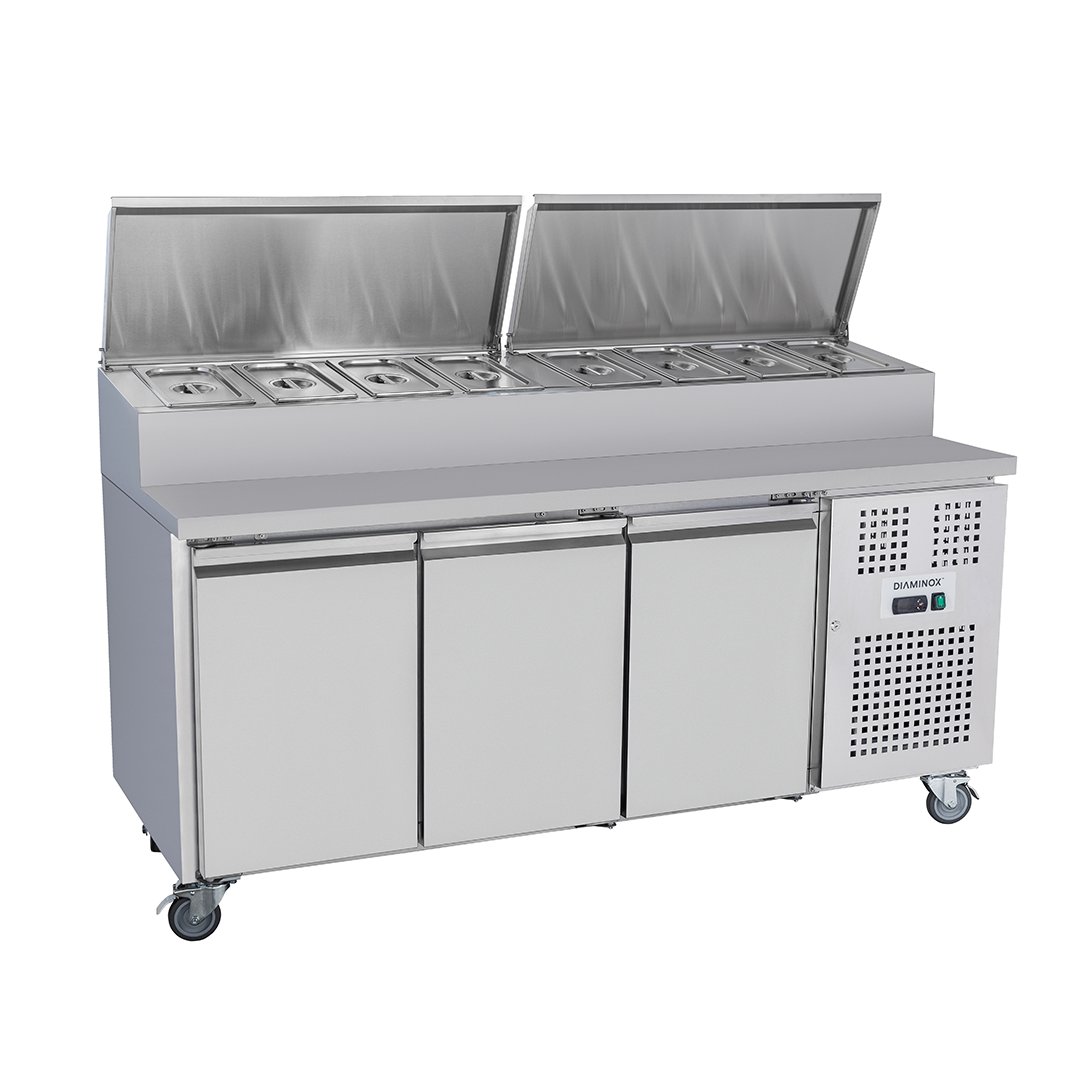 Brand New Diaminox Triple Door Saladette Bench Fridge With 8 x 1/3 Gastro Pans VPC180R-1