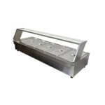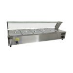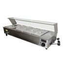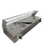 The Heittox wet bain marie is a versatile and reliable unit perfect for any commercial kitchen. With its 5 x 1/3 100mm Gastros, the wet service Bain Marie with glass canopy can hold a variety of pre-cooked foods ready to serve.