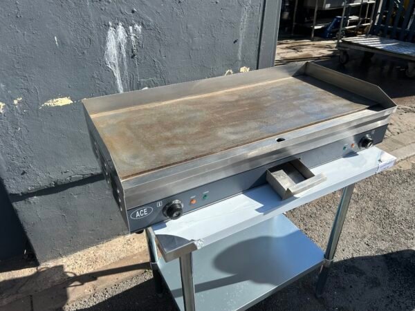 Elevate your cooking game with the Ace 100cm Electric Mild Steel Griddle. With its sleek stainless steel cooking surface and two burners, this commercial-grade griddle is perfect for restaurant and food service use. The thermostatic control ensures precise cooking temperatures, giving you optimal results every time. This top-of-the-line griddle from ACE is perfect for any kitchen looking to up their cooking game. The unit’s electric power type ensures easy operation and the mild steel construction ensures durability. Whether you’re cooking up a storm in a commercial kitchen or preparing a feast for family and friends, the Ace 100cm Electric Mild Steel Griddle is the perfect addition to your cooking